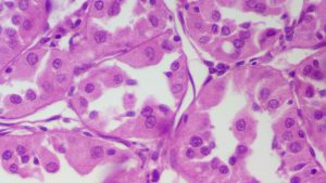 The typical histological pattern of TFE3-rearranged RCC is a papillary neoplasm made up of epithelioid clear cells with abundant psammoma bodies. These tumors can also mimic other renal neoplasms, including clear cell RCC, papillary RCC, clear cell papillary renal cell tumor, multilocular cystic renal cell neoplasm of low malignant potential, oncocytoma, and epithelioid angiomyolipoma. Some TFE3-rearranged RCCs contain melanin pigment, creating similarities with TFE3-rearranged pigmented perivascular epithelioid cell tumors (PEComas). Unlike typical PEComas, TFE3-rearranged PEComas generally affect younger patients, exhibit clear cell morphology, show minimal to no muscle marker immunoreactivity, and do not have TSC1 or TSC2 gene inactivation or an association with tuberous sclerosis.