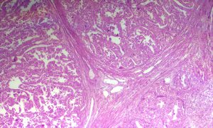 The usual histological pattern of the TFE3-rearranged RCC is that of a papillary neoplasm composed of epithelioid clear cells with abundant psammoma bodies