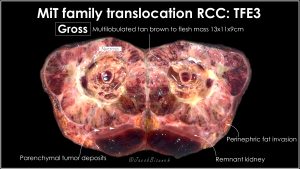 We consulted Dr. Maria Tretiakova via Email, and she agreed, replying, “I agree with your assessment based on H&E and patient age that this tumor is best classified as “Favor translocation RCC (MiT family).” I think it’s most likely TFE3-rearranged). Also, some areas show grade 3 features (quite pleomorphic with prominent nucleoli), but it should be evaluated at 10x.”