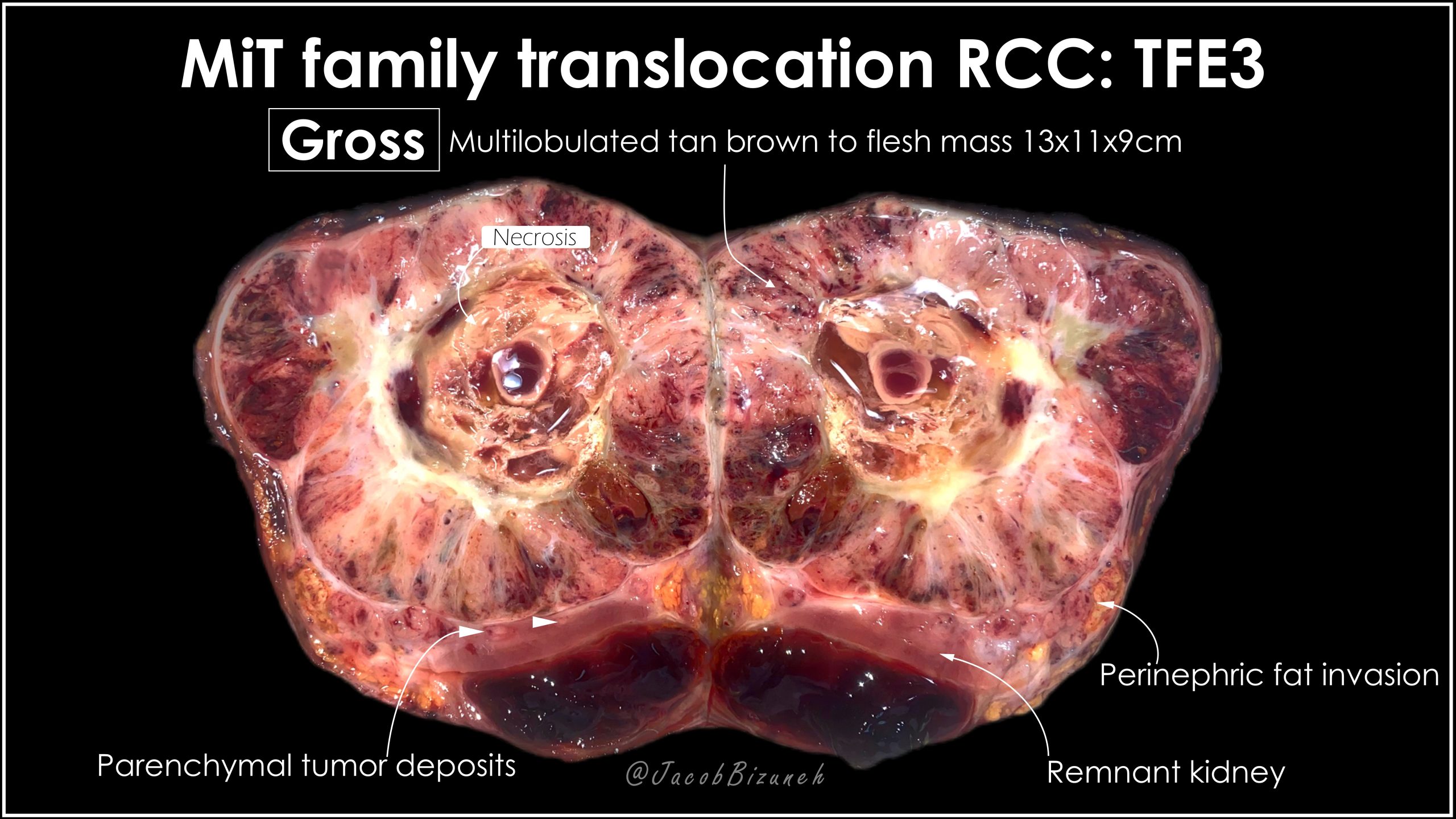 We consulted Dr. Maria Tretiakova via Email, and she agreed, replying, “I agree with your assessment based on H&E and patient age that this tumor is best classified as “Favor translocation RCC (MiT family).” I think it’s most likely TFE3-rearranged). Also, some areas show grade 3 features (quite pleomorphic with prominent nucleoli), but it should be evaluated at 10x.”